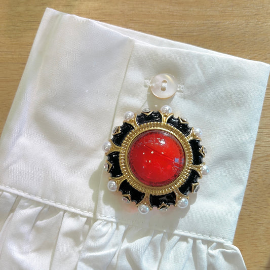 BROCHE - CABOCHON ROUGE ET NOIR
