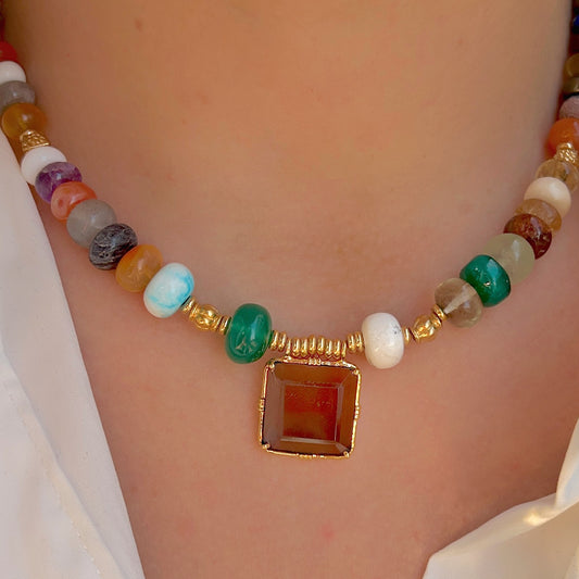 COLLIER - CARRE MULTICOLORE