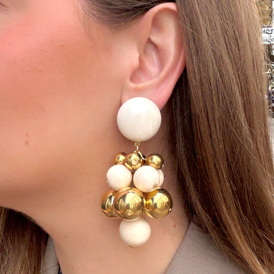 BOUCLES D'OREILLES - GRAPPE BEIGE
