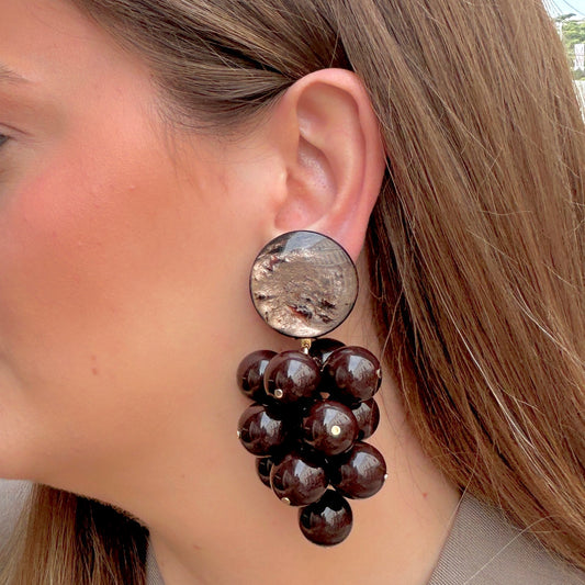 BOUCLES D'OREILLES - GRAPPE MARRON