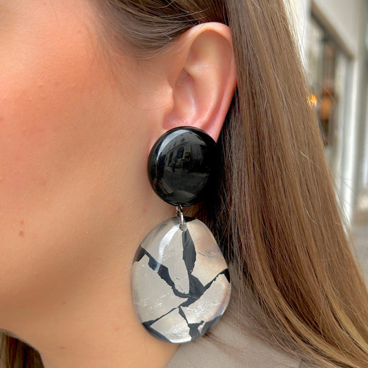BOUCLES D'OREILLES - LEOPARD NOIR ET BLANC