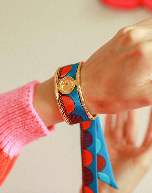 RUBAN 1 CM - LÉOPARD BLEU ET JAUNE