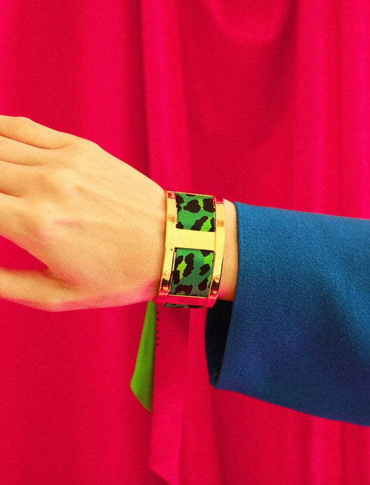 RUBAN 1 CM - LÉOPARD VERT ET ROSE