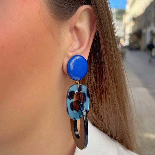 BOUCLES D'OREILLES - DOUBLE MESSE LEOPARD BLEU