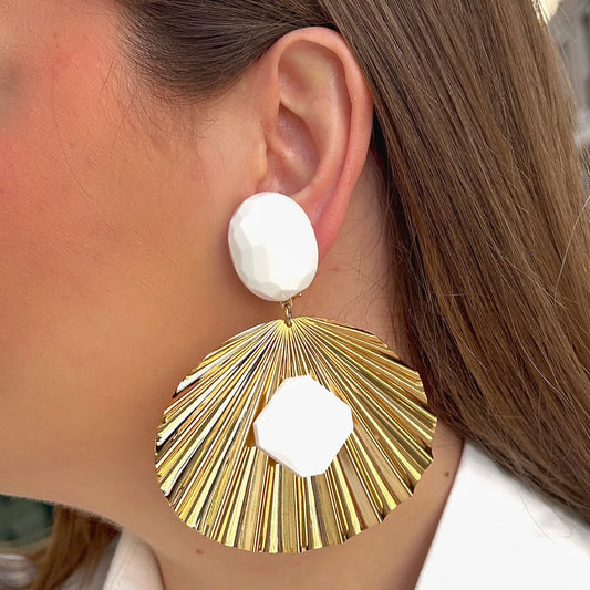 BOUCLES D'OREILLES - EVENTAIL DORÉ BLANC