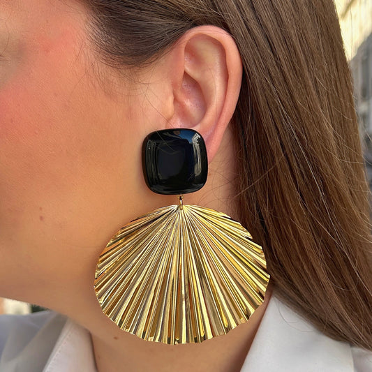 BOUCLES D'OREILLES - EVENTAIL DORÉ NOIR