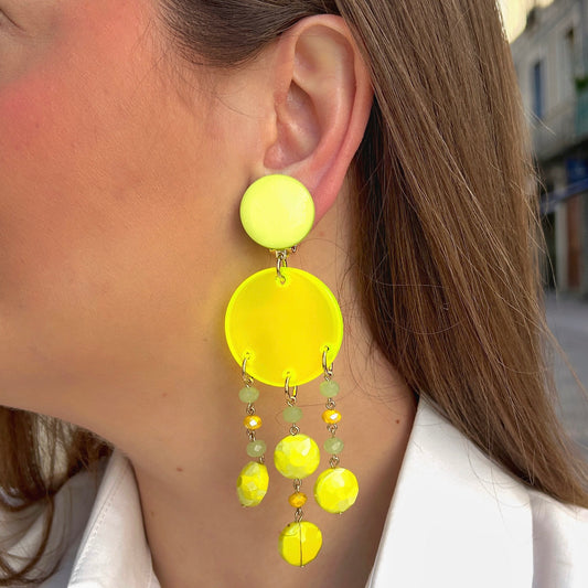 BOUCLES D'OREILLES - PAMPILLES JAUNE FLUO
