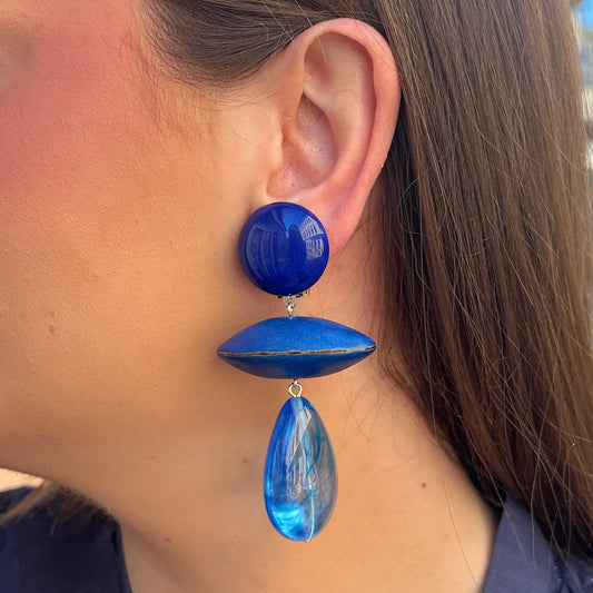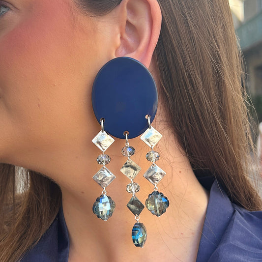 BOUCLES D'OREILLES - PAMPILLES BLEU ARGENT