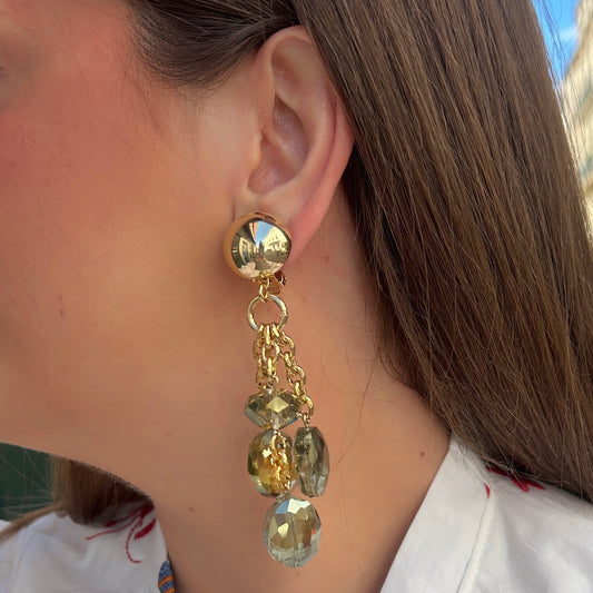 BOUCLES D'OREILLES - CRISTAL KAKI