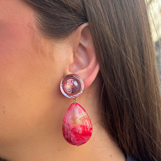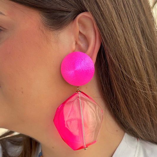 BOUCLES D'OREILLES - HEXAGONE ROSE FLUO