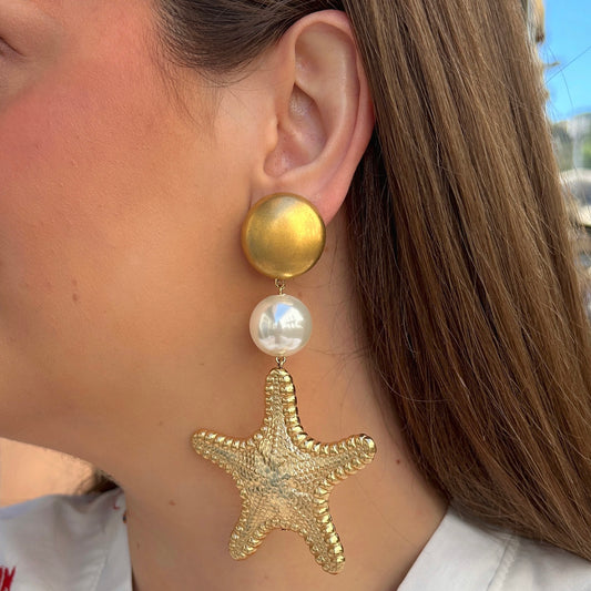 BOUCLES D'OREILLES - ÉTOILE DE MER PERLES DORÉES