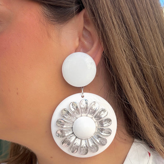 BOUCLES D'OREILLES - DISQUE FLEUR ARGENT