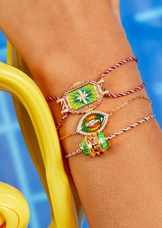 Succombez à l’énergie dorée de la collection Mya Bay, disponible chez Divinity à Sète. Bijoux modernes et solaires, les créations Mya Bay mixent chaînes lumineuses, symboles graphiques et finitions précieuses pour sublimer chaque geste. Colliers, bracelets et bagues se portent en accumulation pour affirmer votre style avec éclat.