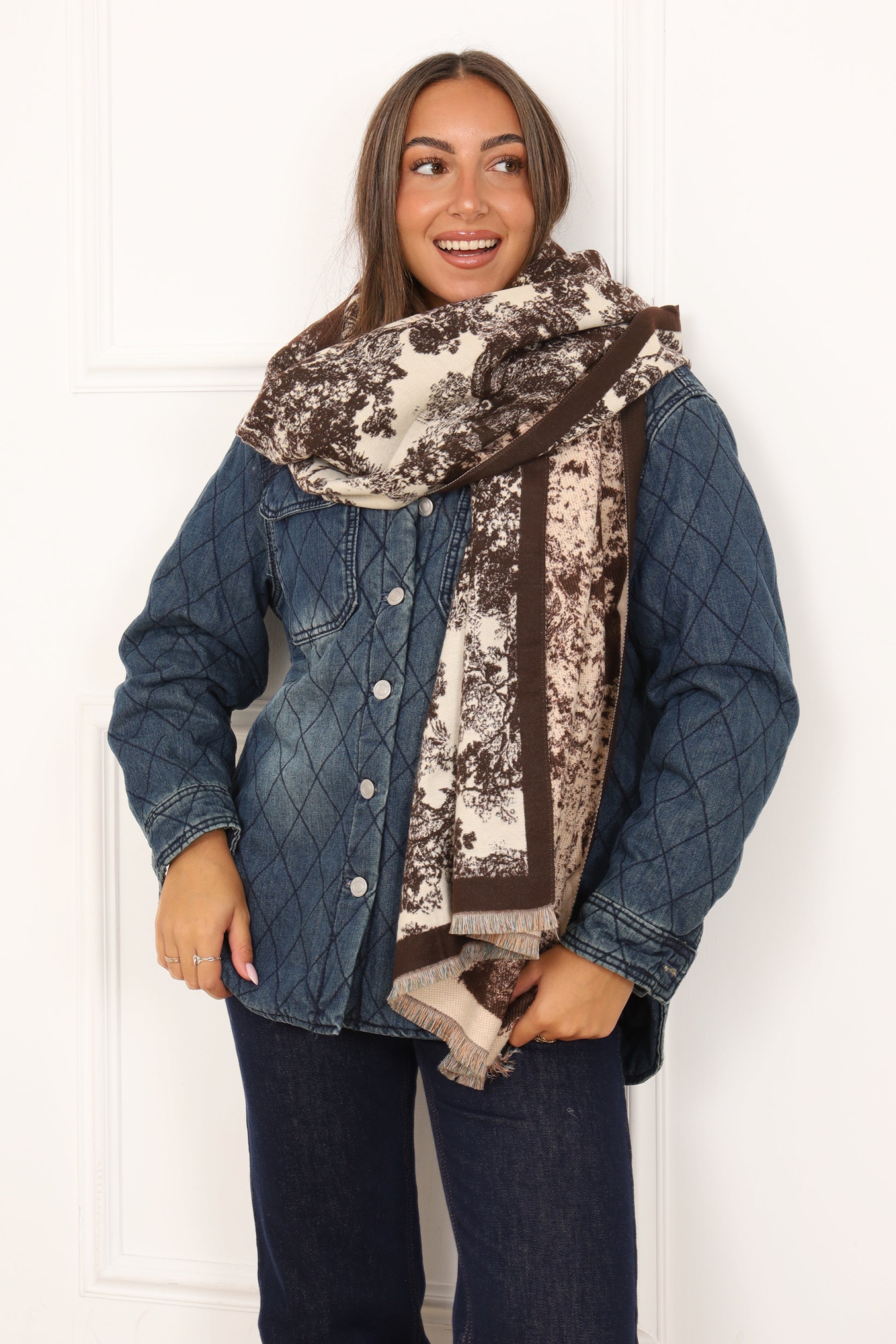 L’écharpe Diana enveloppe vos tenues d’une élégance intemporelle et d’un charme raffiné. Son motif toile de Jouy revisité apporte une touche d’art et de douceur à vos looks, tout en évoquant un style à la fois romantique et moderne.