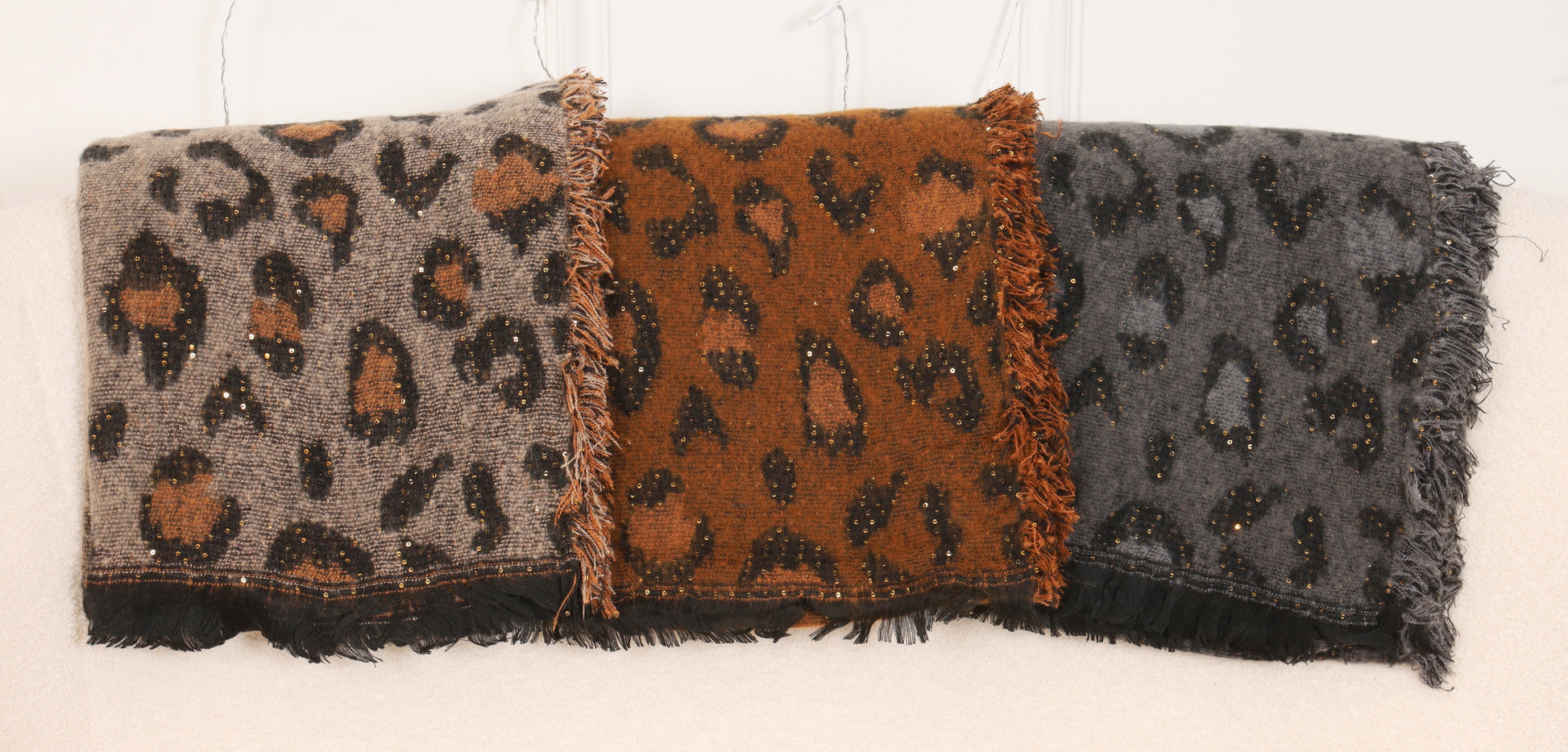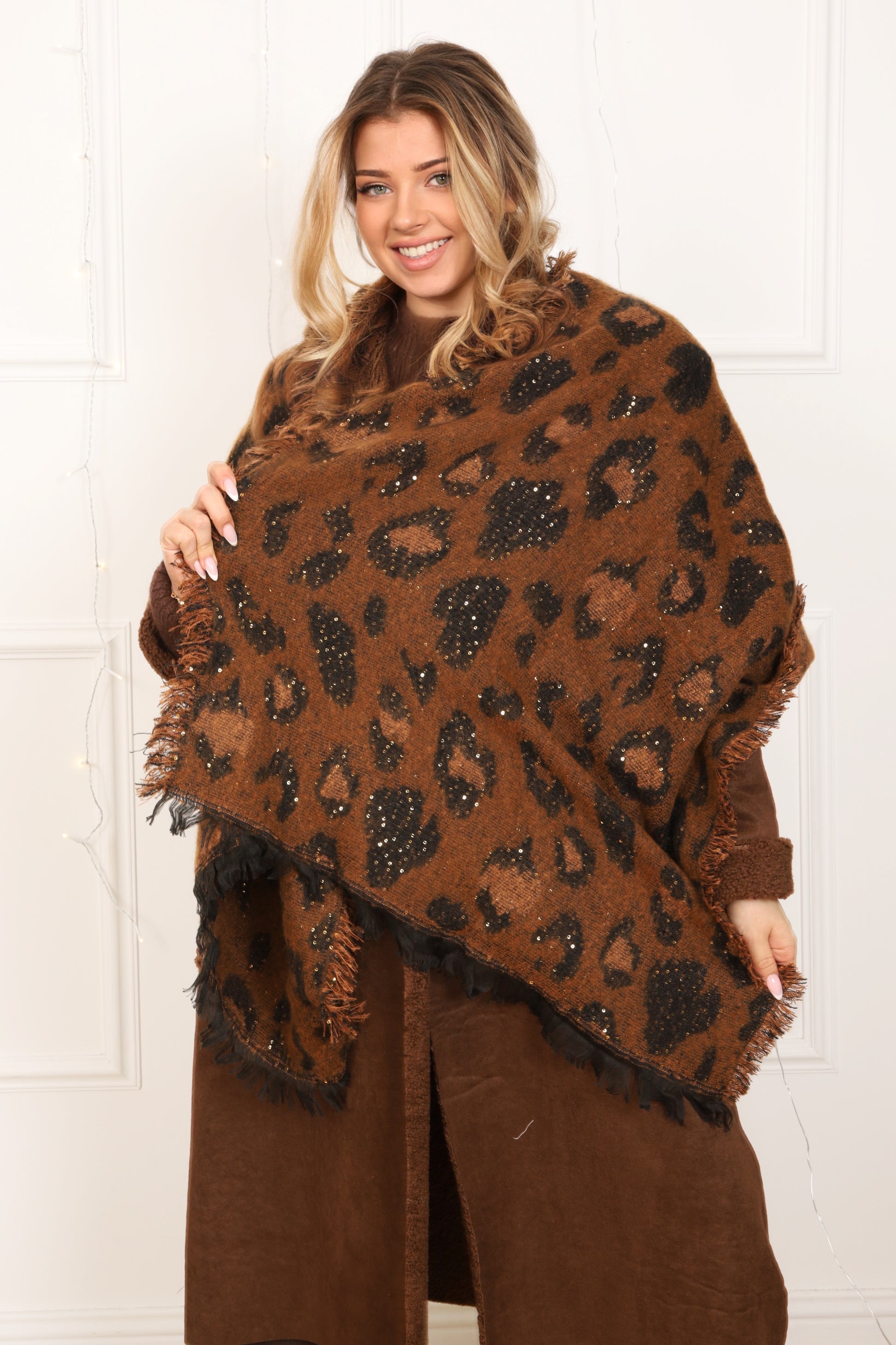 Chaleureuse et résolument stylée, l’écharpe Lenny est l’accessoire parfait pour sublimer les silhouettes hivernales. Son motif léopard revisité, ponctué de délicats reflets scintillants, apporte une touche audacieuse tout en restant élégante et facile à porter.