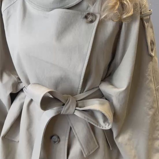 Dotée d’une ceinture à nouer, elle permet d’ajuster la taille selon l’envie, soulignant la silhouette tout en conservant un tombé fluide et confortable. Les détails soignés, comme les pattes boutonnées aux épaules et les poches discrètes, renforcent son allure chic et contemporaine.